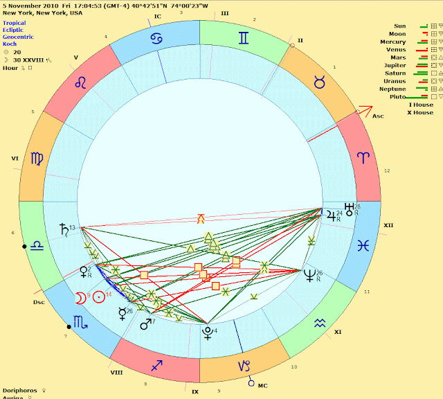 It was well known that Gann used and applied Astrology to the financial markets. So, we too have included two exhibits below, showing a time span of just two weeks apart, to suggest and demonstrate how the Astro-sky will soon change.